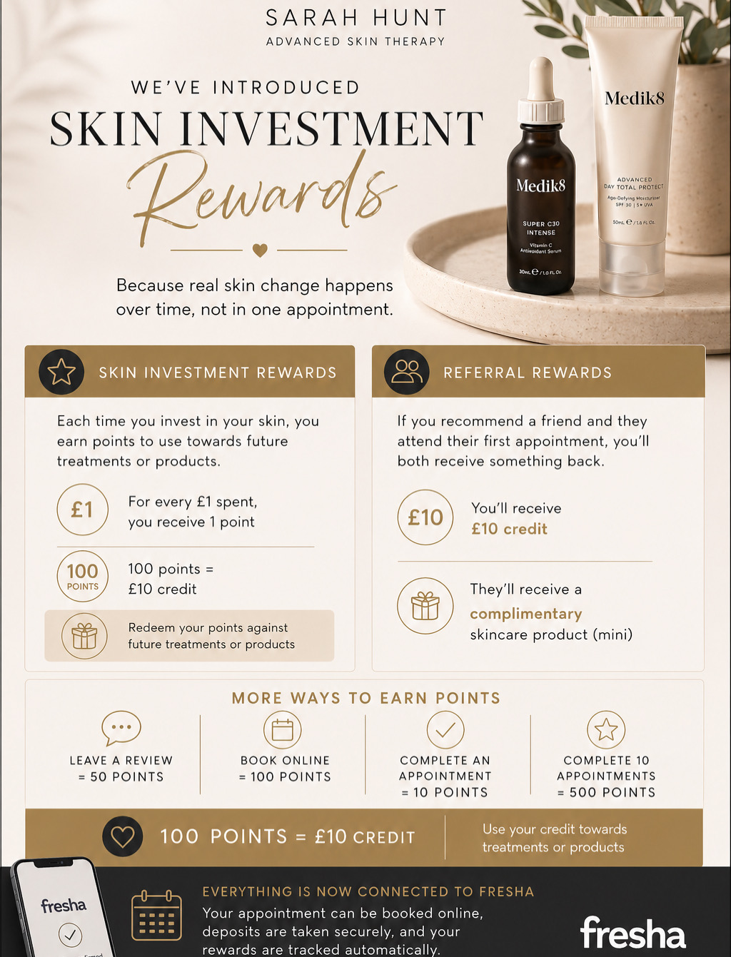 Sarah is known for her clear, honest guidance and her ability to create personalised treatment plans that are both effective and manageable for long-term results.